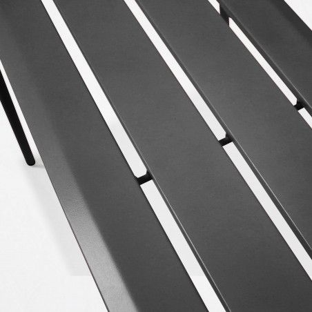 Le banc est en acier thermolaqué, ce qui le rend résistant aux intempéries et aux UV. La finition époxy le protège des chocs et des rayures