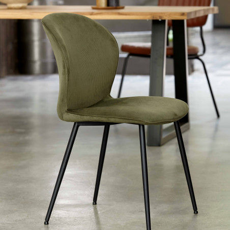 Chaises de restaurant en velours côtelé et métal - Lot de 2