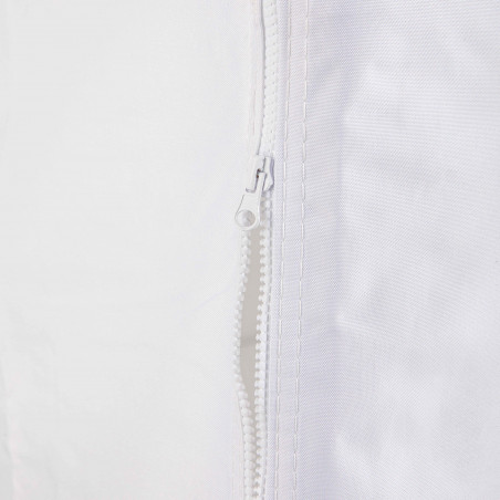 Pack complet tente de stockage composé d'une Tente pliante blanche de qualité professionnelle, de 3 murs pleins, un mur porte et de 4 poids de lestage. La tente pliante est livrée avec son sac de transport équipé de roulettes : vous pouvez donc transporter la tente très facilement et le tout sans efforts. La tente pliante fait 3 m de côté, sa structure hexagonale en aluminium de 40 mm résiste aux charges lourdes et à utilisation professionnelle intensive. Elle se monte seul en quelques minutes. La tente pliante de stockage est livrée avec un kit d'arrimage pour sol meuble (8 sardines et 4 cordes) et un kit d'arrimage pour sol dur (platines d'ancrage en acier + 4 poids de lestage de 12 kg chaque). Garantie 5 ans. La bâche solide et épaisse de 300 g/m² résiste aux UV et ne se décolore pas. Elle est imperméable et résiste aux intempéries. Montage sans outil. Structure hexagonale pliante en aluminium de 40 mm avec 5 niveaux de hauteur (de 210 à 240 cm). Pack comprenant un kit de fixation pour sol meuble